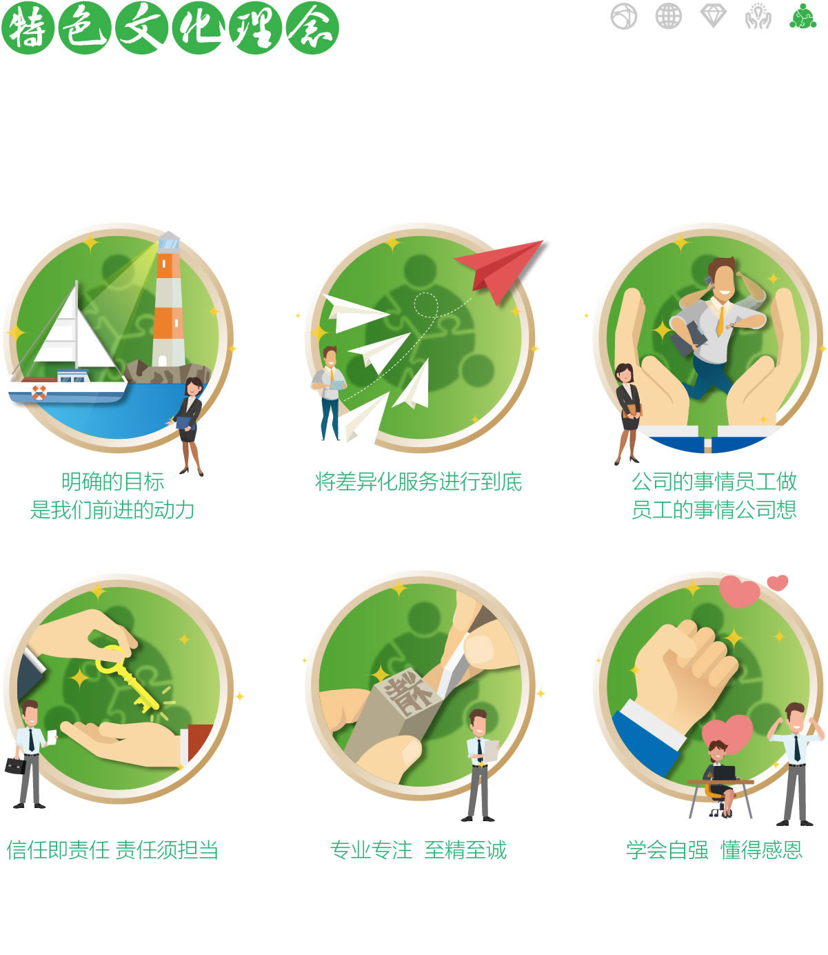 特色文化理念是在不同历史时期逐渐形成、在不同领域发挥作用的文化信条。他们充满哲理、积极向上、内涵丰富,是全体918搏天堂AG旗舰人共同创造的精神财富。“明确的目标是我们前进的动力”帮助我们设立科学的目标以成就事业。“将差异化服务进行到底”是我们打造不可替代竞争力的宣言。“公司的事情员工做,员工的事情公司想”体现了公司与员工的依存关系918搏天堂AG旗舰。“信任即责任,责任须担当”传递出我们积极正向的信任链。“专业专注,至精至诚”是我们倡导的做人原则和做事风格。“学会自强,懂得感恩”是我们追求成功、实现幸福的人生公式。